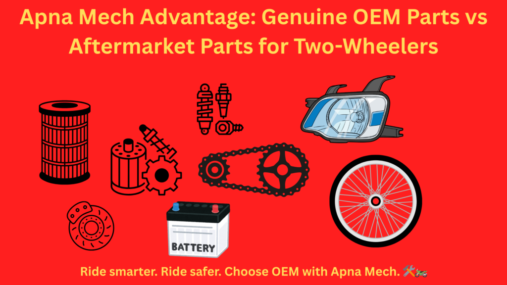 This blog explains why OEM parts matter, how they compare to aftermarket alternatives, and why Apna Mech follows an OEM-first approach for two-wheeler servicing.